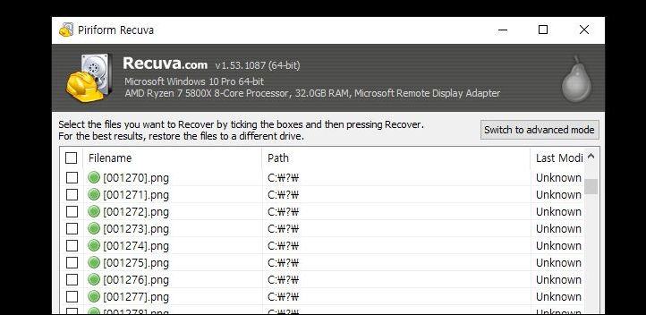Recuva로 복구가 안되는 경우 또는 부분적으로만 복구된 경우
