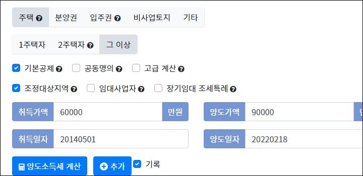 아파트 양도세 계산 - 부동산 계산기 사이트 소개
