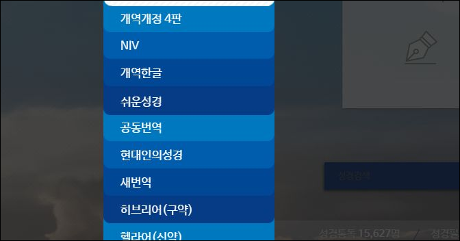 메뉴를 통해 구약/신약 각각 선택해서 원하는 부분을 읽어 볼 수 있습니다.