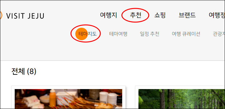 추천 - 테마지도를 통해서 주제별로 모아놓은 관광지를 확인할 수 있는데요,
