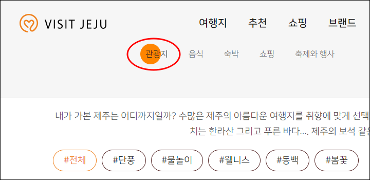 제주도 추천 관광지 찾기 - visit jeju 제주도 관광지 추천 메뉴
